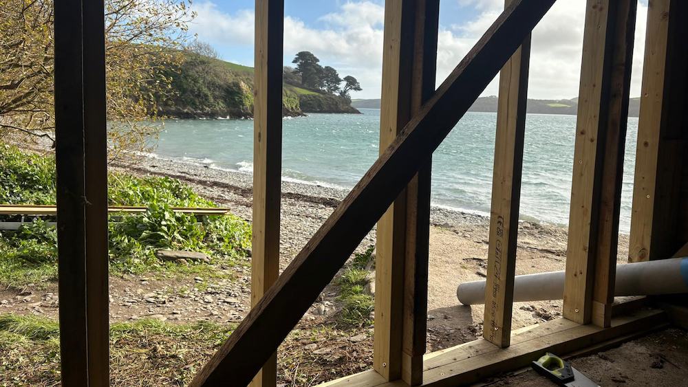 Carwinion Boathouse is not an easy project – there is no vehicle access, no on-site facilities and the building sits directly on a public footpath on an exposed beach. Materials can only reach it by sea or on foot and every stage of work is dictated by tides, weather and beach use. It’s the kind of job most contractors sensibly run away from.